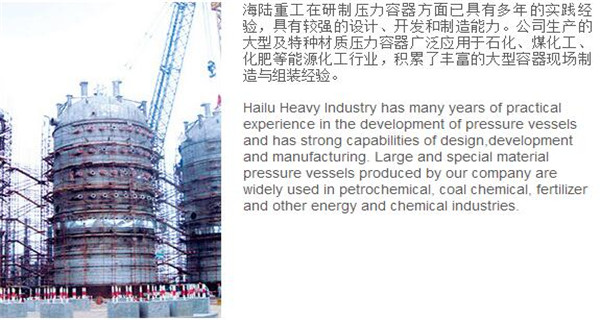 蘇州海陸重工股份有限公司位于江蘇省張家港市開發(fā)區(qū),是國內一流的節(jié)能環(huán)保設備的專業(yè)設計制造企業(yè),目前并已初步形成鍋爐產品、大型壓力容器、核電設備、低溫產品、環(huán)保工程共同發(fā)展的業(yè)務格局。公司創(chuàng)建于1956年,注冊資本51640萬元,占地面積近50萬平米。公司下設八個控股子公司,一個余熱鍋爐研究所,在瑞士、北京、武漢、南京、上海、杭州、廣州等地設立分支機構,擁有雄厚的研發(fā)實力。公司秉承“科技領航、業(yè)界先鋒”的發(fā)展理念,注重研究廢熱、余熱利用和環(huán)境保護相結合的新技術研發(fā),自主設計能力居同行前列;公司承擔過國家863計劃,江蘇省科技成果轉化專項資金,榮獲國家科技進步二等獎,產品擁有核心自主知識產權并取得專利50多項;公司推行國際先進的管理體系標準和認證,擁有 A級鍋爐制造許可證,A1、A2、A3級壓力容器設計和制造許可證,取得了民用核承壓設備制造資格許可證、美國機械工程師學會(ASME)“S”、“U”鋼印,通過了ISO9001質量體系認證、健康體系認證和14000環(huán)境體系認證;公司設備先進,裝備精良,專業(yè)嚴謹的制造理念打造出品質非凡、質量一流的“海陸”品牌聲譽。